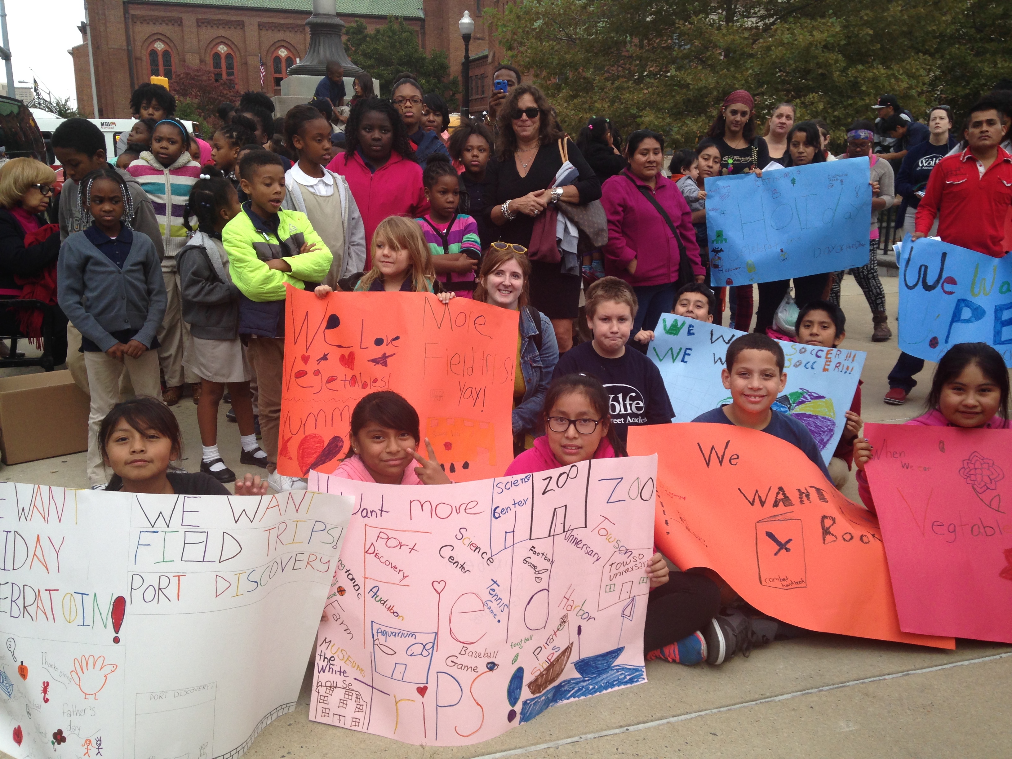 Hundreds descended on City Hall Tuesday afternoon, 10/21/14, to support a call for expansion of Baltimore's community schools. Principals, parents, elected officials, and students gave remarks calling on the City Council to support a resolution that would increase funding for community schools.